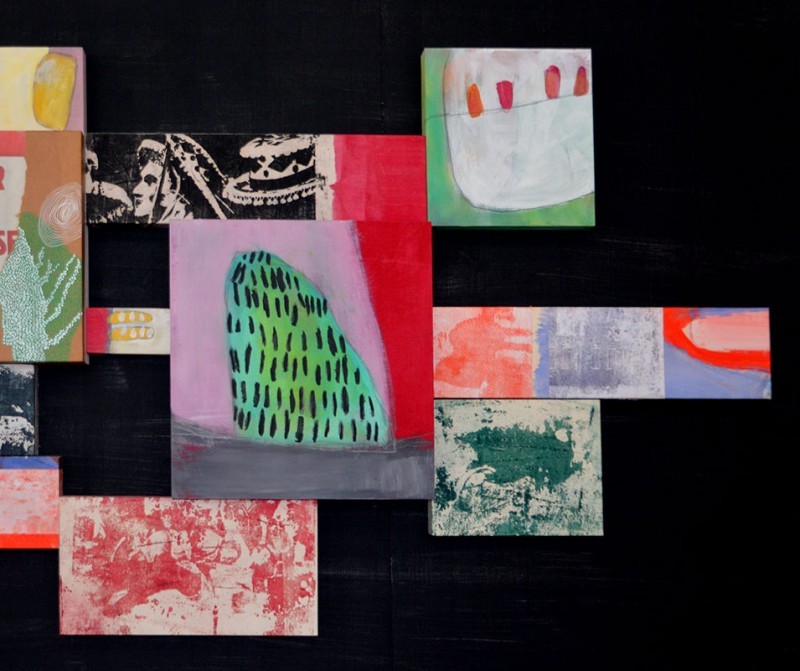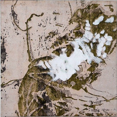 naturpur, 2014, Reihe 1-18, Transferlitografie und Acryl auf Holz, 20x20 cm naturpur II Acryl, Kreide, Collage und Transferlitografie auf Holz 20x20 cm schwyzer talchessel – “die leute sind der ort ist die leute“